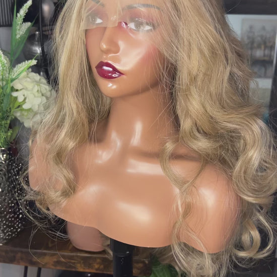Perruque blend hair de qualité supérieure 22 pouces , bouclés couleur blond ombré châtain clair