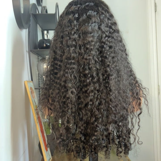 Perruque burnese curly 100% cheveux birman de 24 pouces ; densité 250% couleur noir naturel lace 13x6