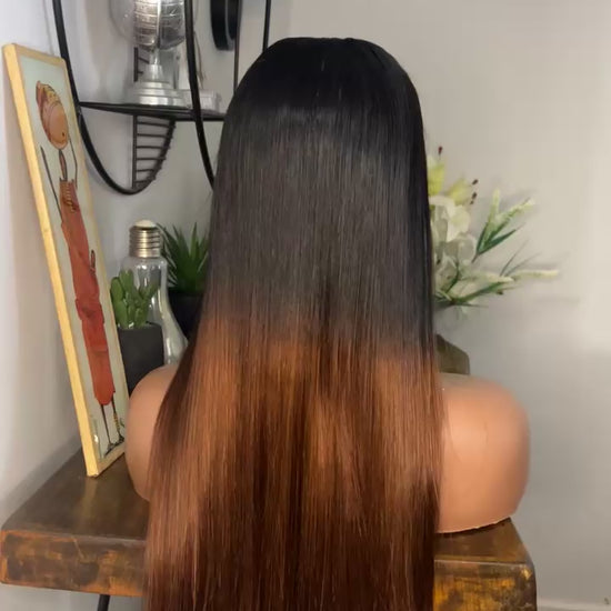 Perruque vietnamienne de 22 pouces SDD Bone straight; densité 350% couleur T1B-30 closure 5X5